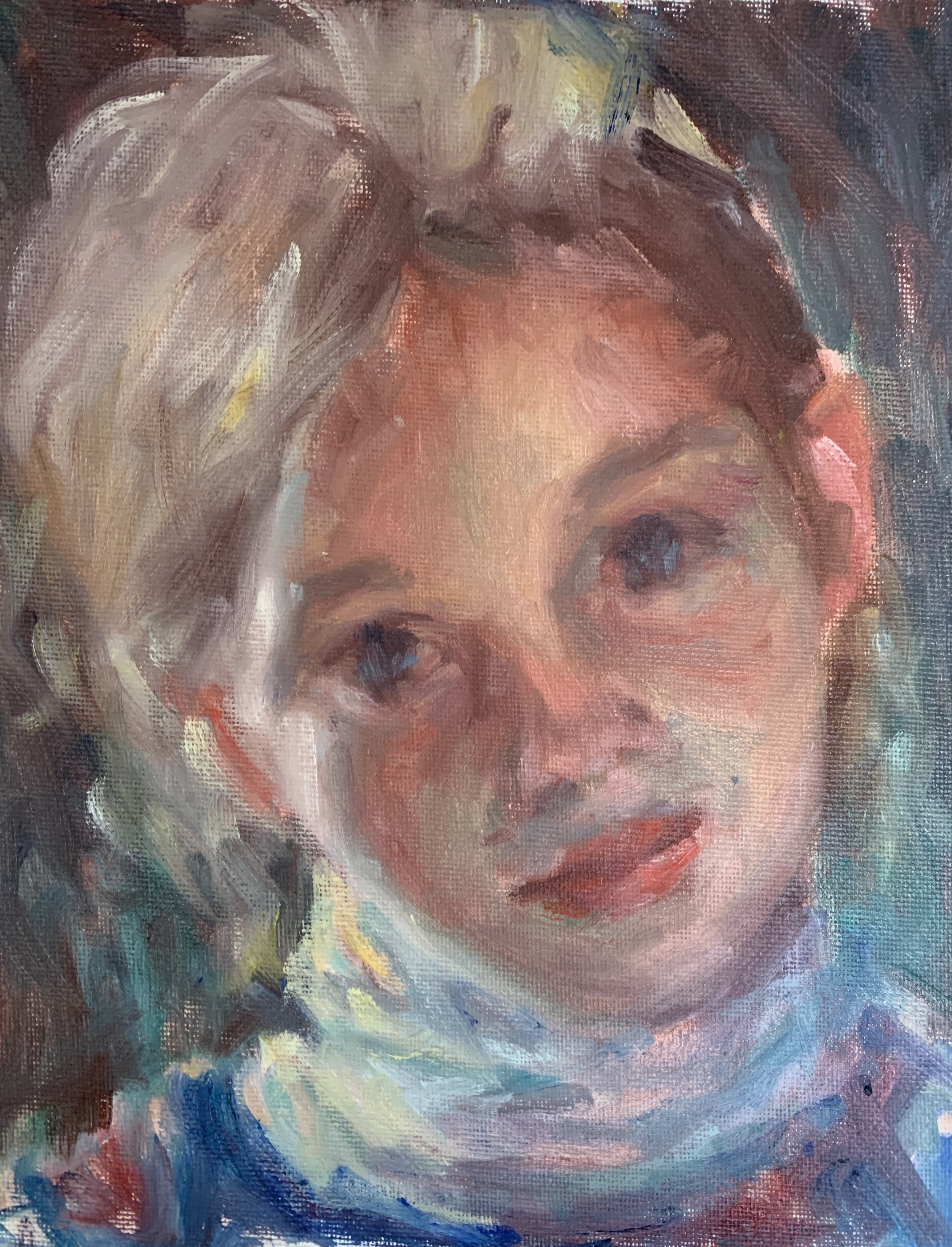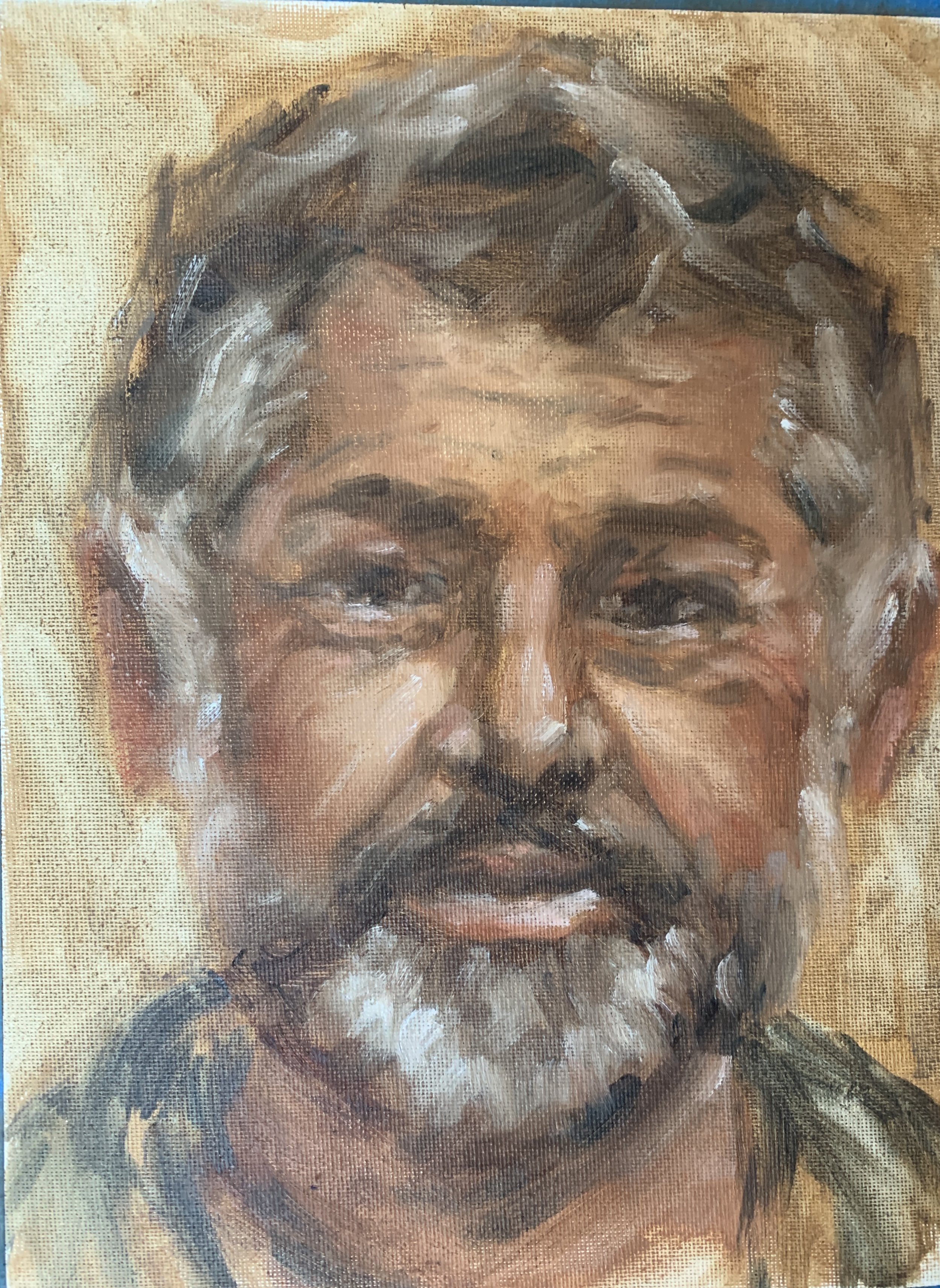 Contemplation, oil on loose canvas, 18 x 24 cm